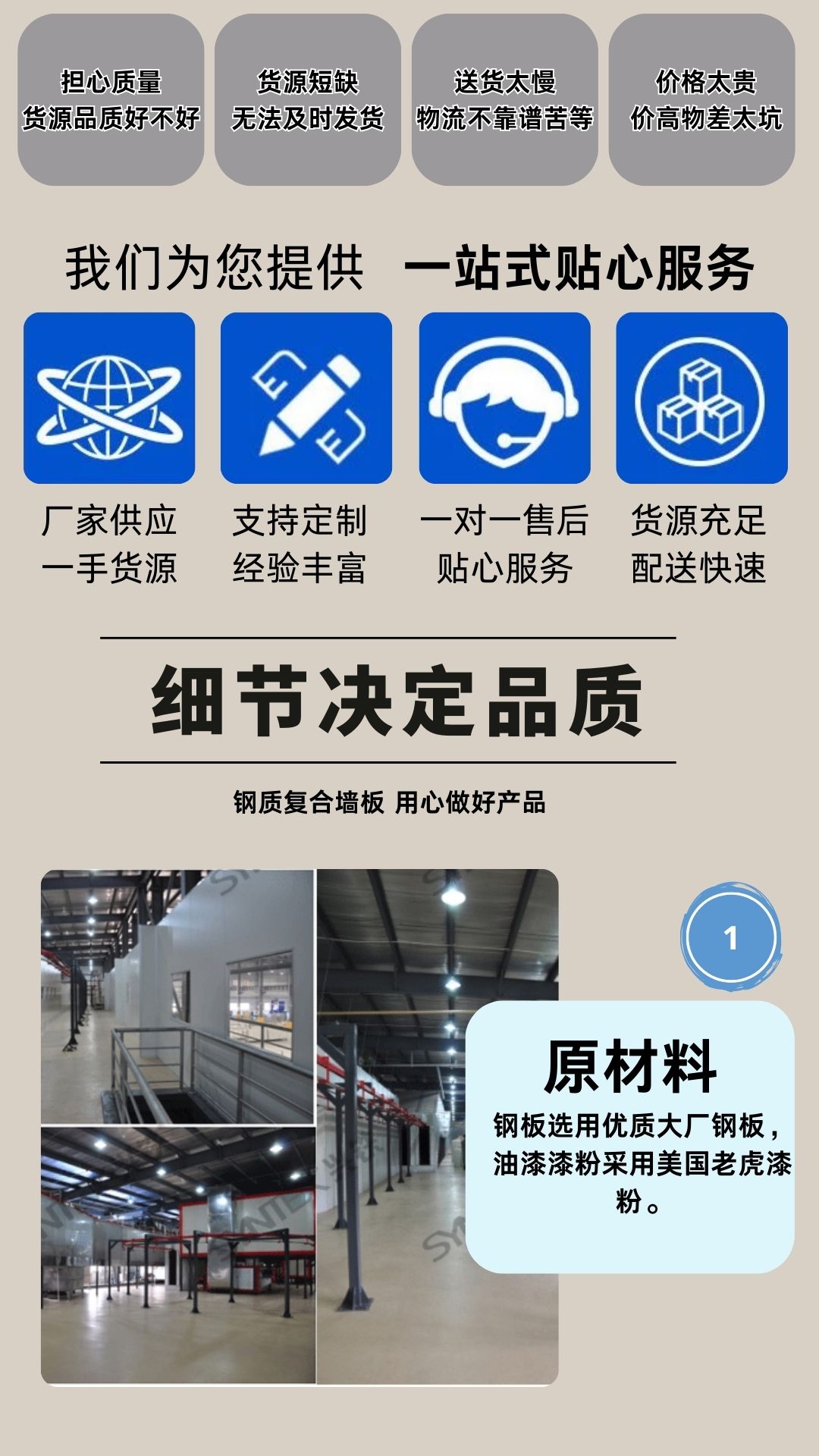介紹:鋼制墻板是一種表面材為鍍鋅鋼板,背面復合石膏板、鋁蜂窩或瓦楞板成型的新型材料,可采用平角碼或卡扣插入式的安裝方式。